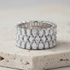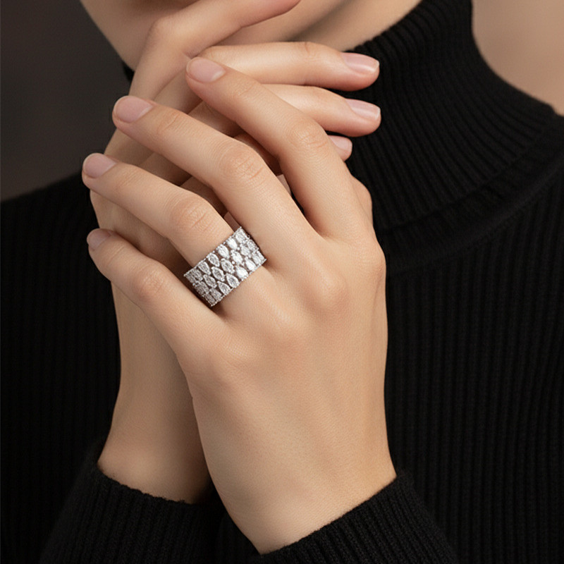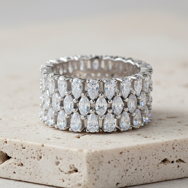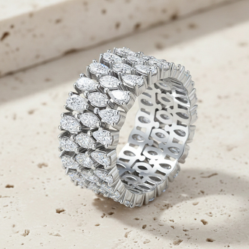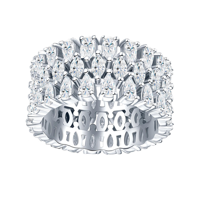【莫桑鑽】梨形+馬眼10.4mm超寬三圈鑽S925銀鍍白金戒指57顆*10分