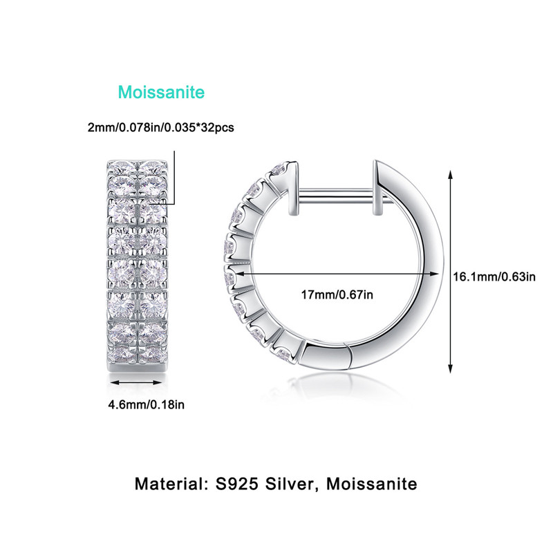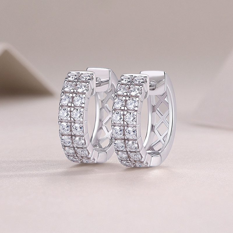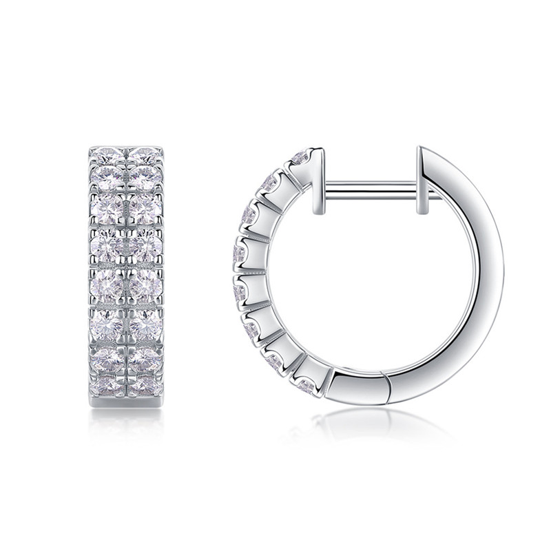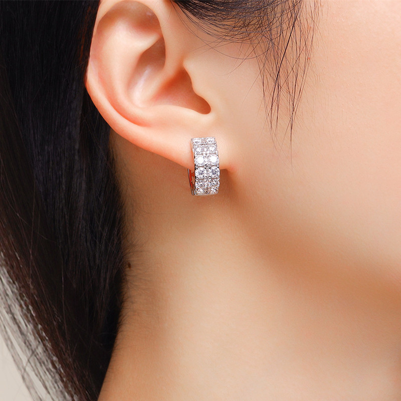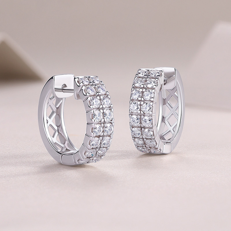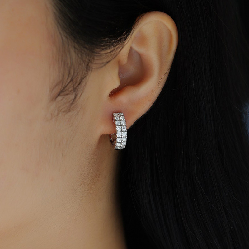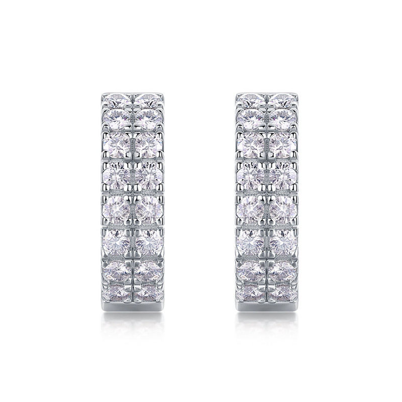 【莫桑鑽】2-3mm雙排小圓鑽S925銀鍍白金扣式耳環