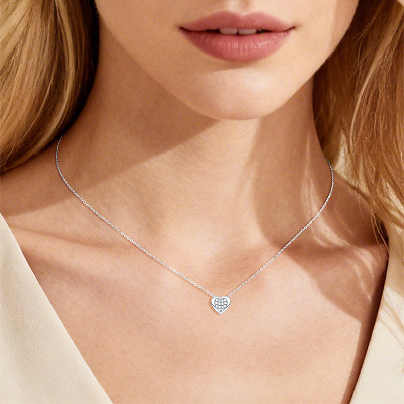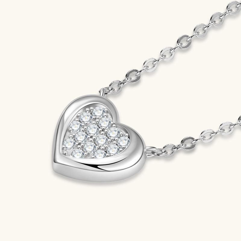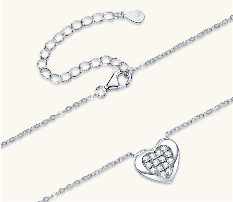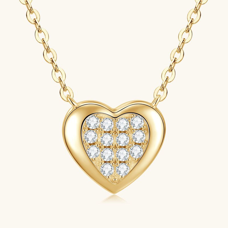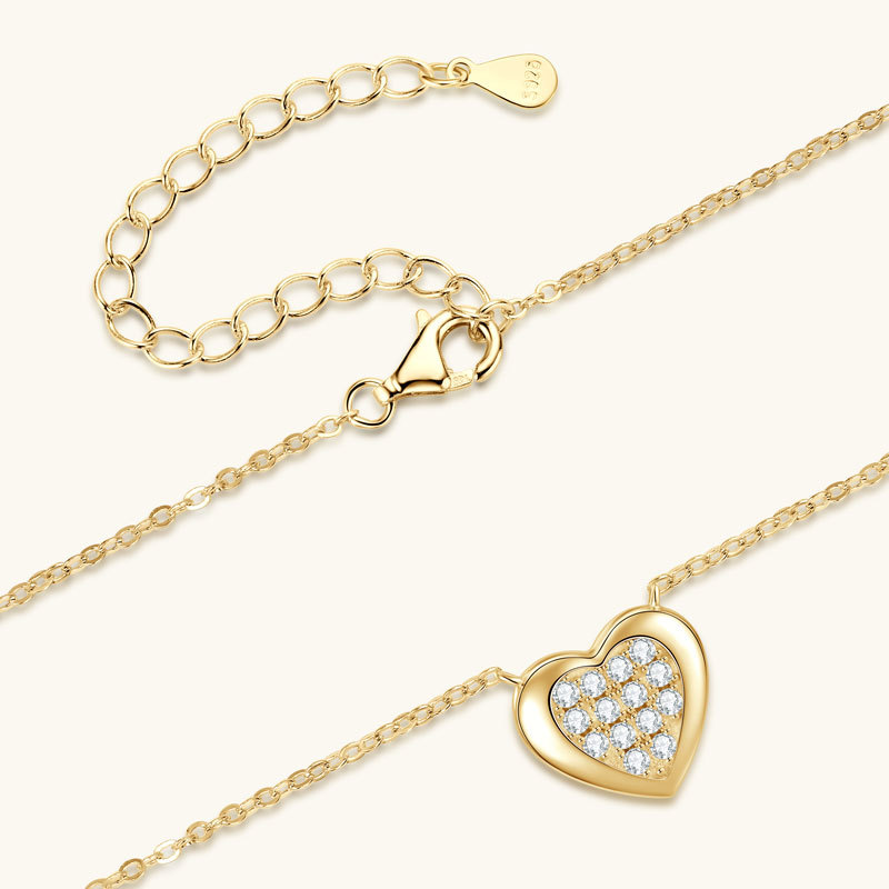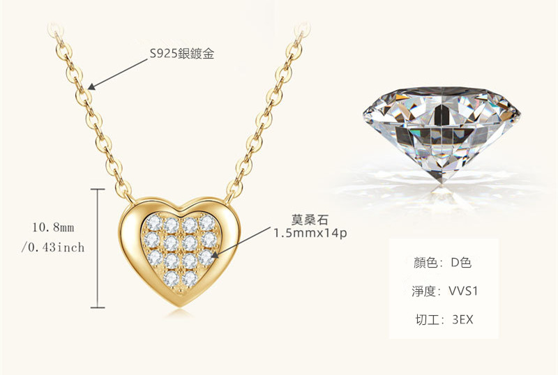 【莫桑鑽】金銀兩色滿鑽愛心鎖S925銀鍍金項鏈