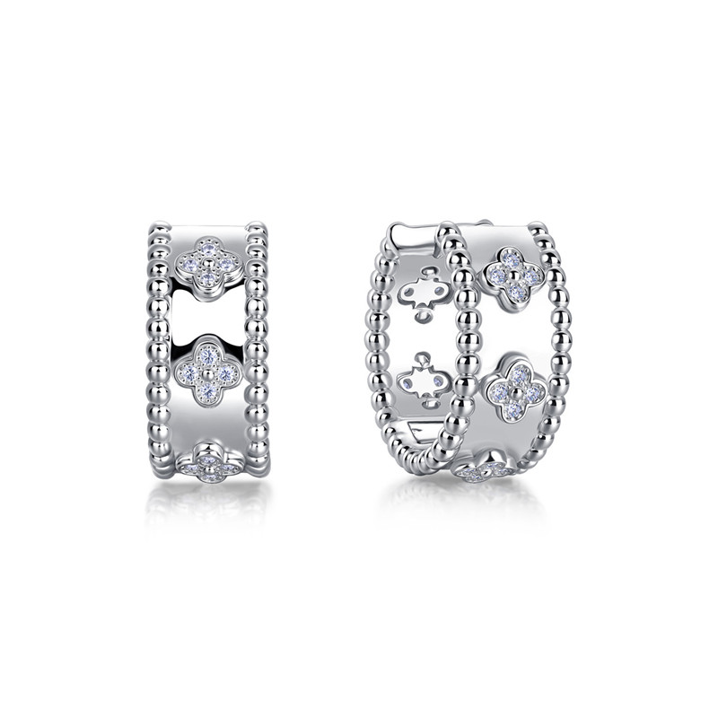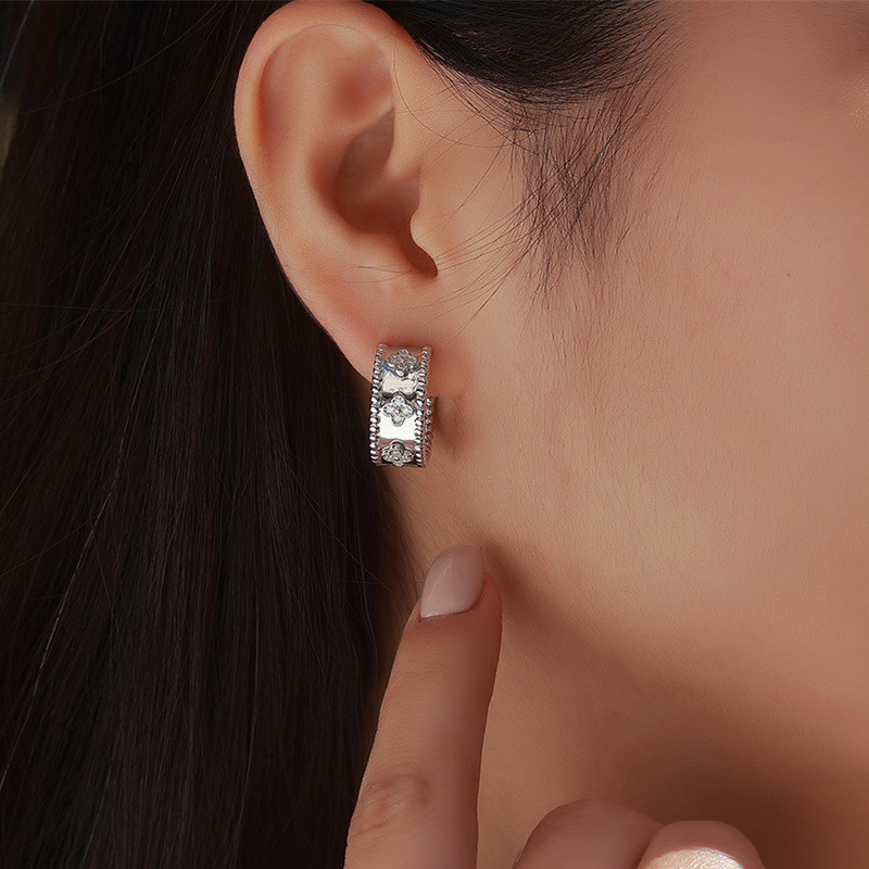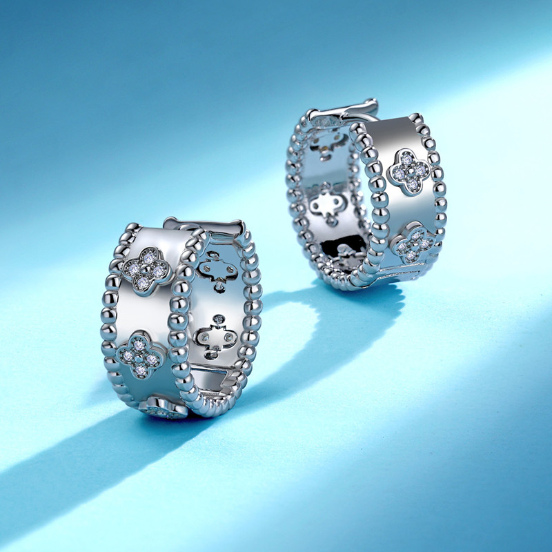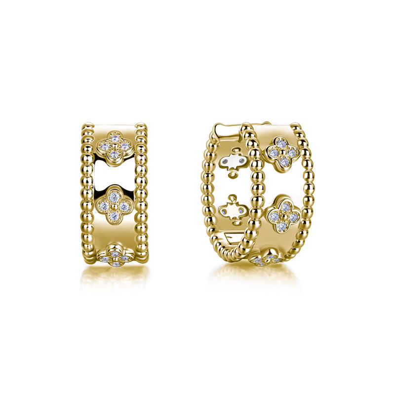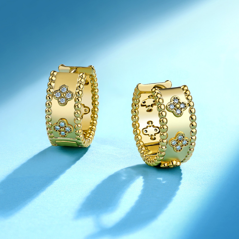【莫桑鑽】金銀兩色輕奢四葉草珠邊S925銀鍍金耳環