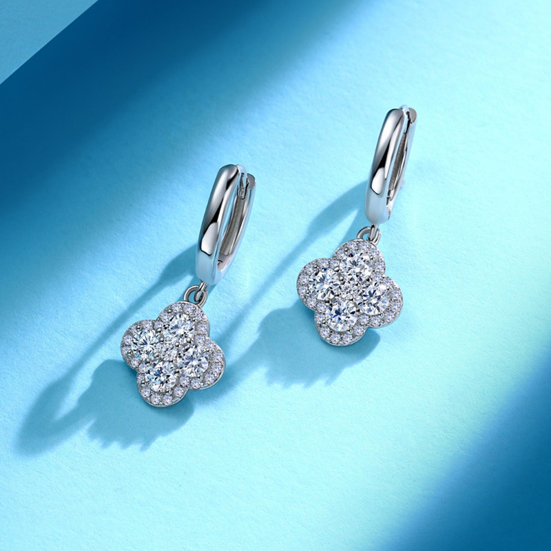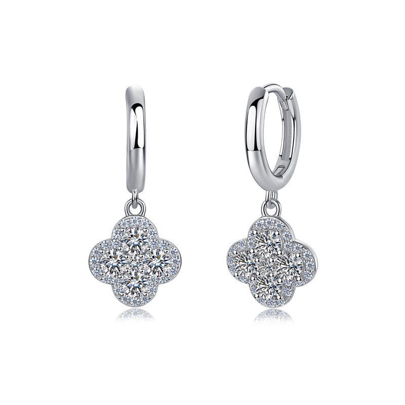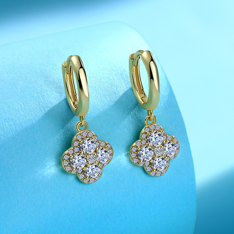 【莫桑鑽】滿鑽四葉草S925銀鍍金項鏈/耳環 數量