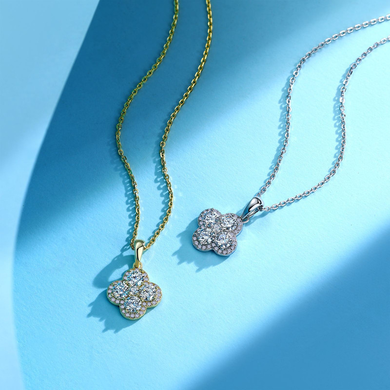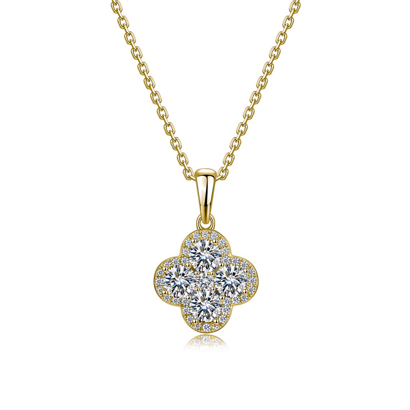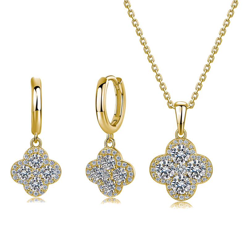 【莫桑鑽】滿鑽四葉草S925銀鍍金項鏈/耳環