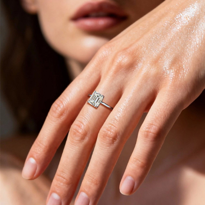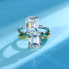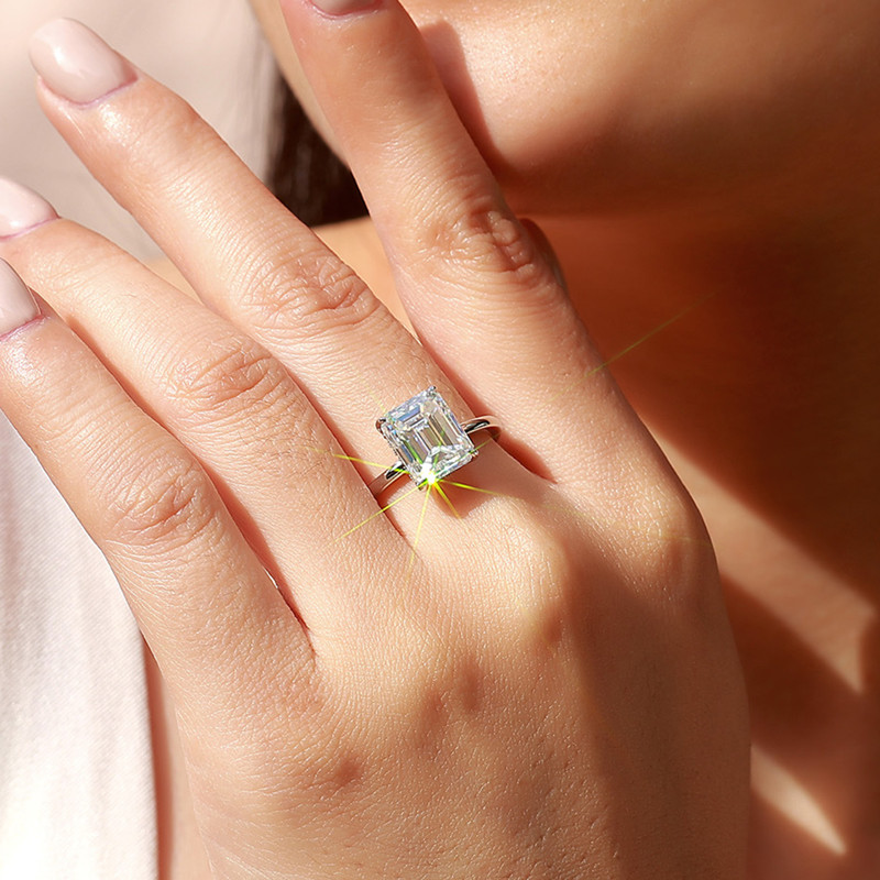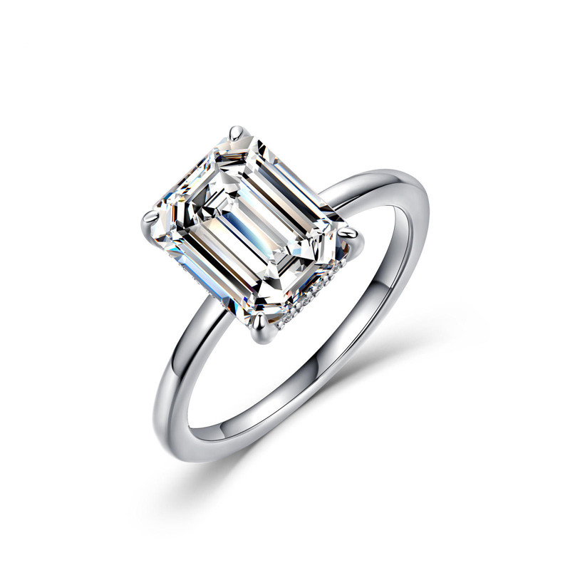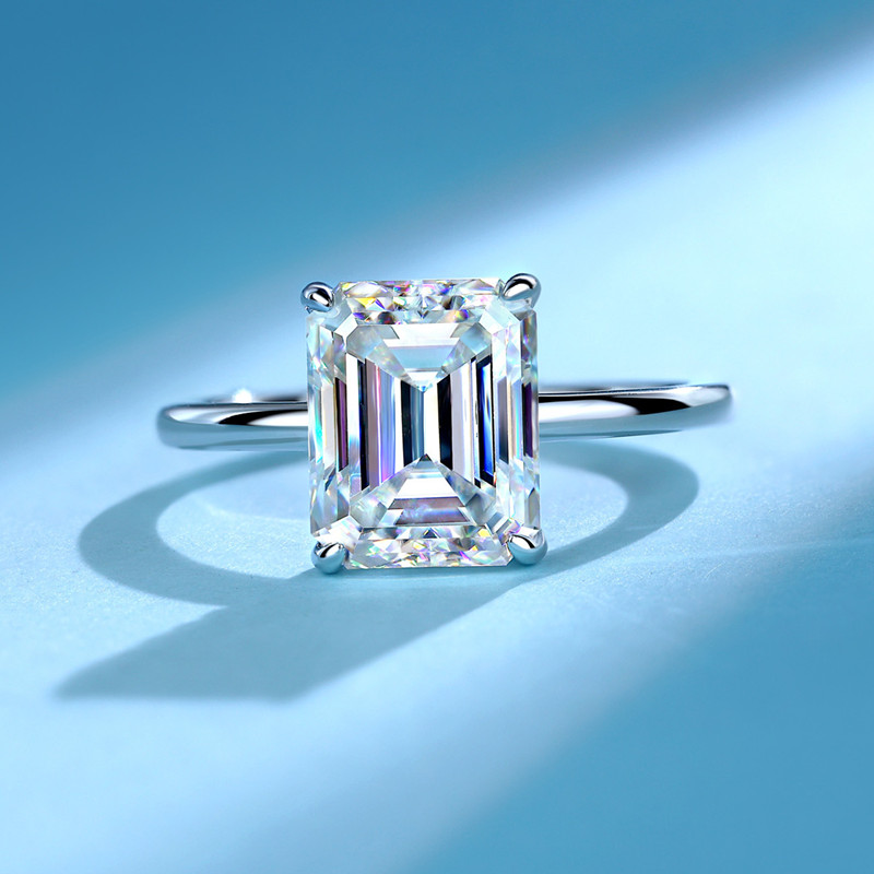 【莫桑鑽】4克拉8*10mm祖母綠切S925銀鍍金戒指金銀兩色