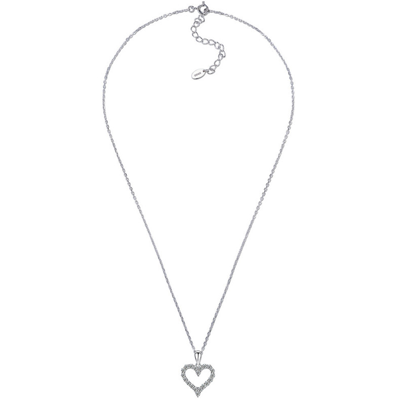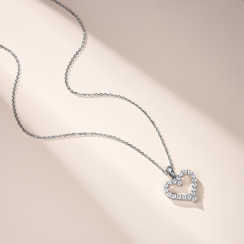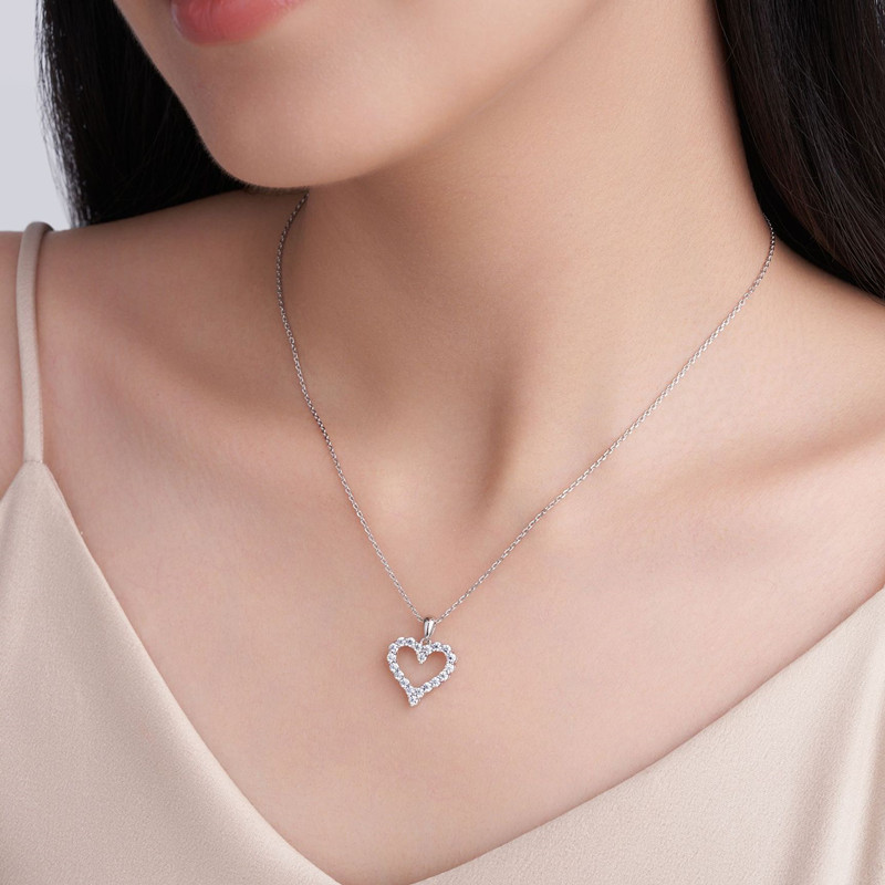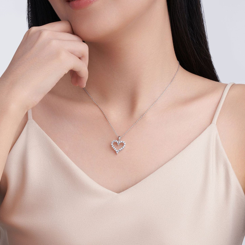 【莫桑鑽】0.66克拉滿鑽愛心S925銀鍍金項鏈金銀兩色