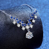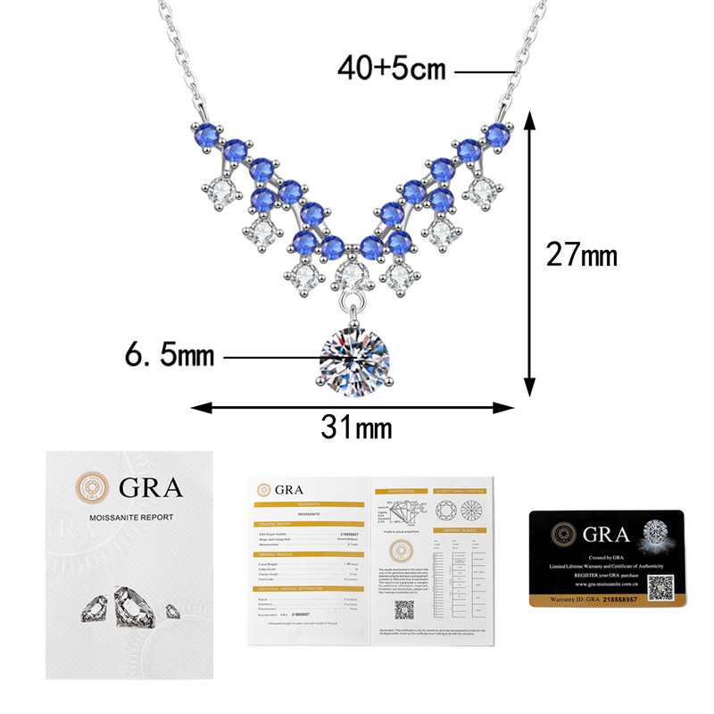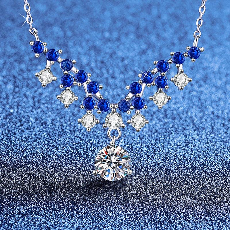 【莫桑鑽】藍色捕夢網1克拉圓鑽S925銀鍍鉑金莫桑石項鏈