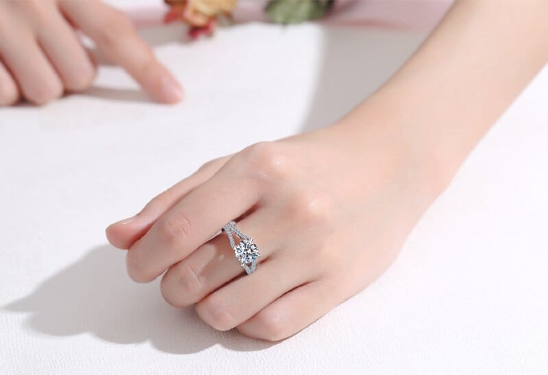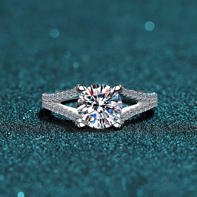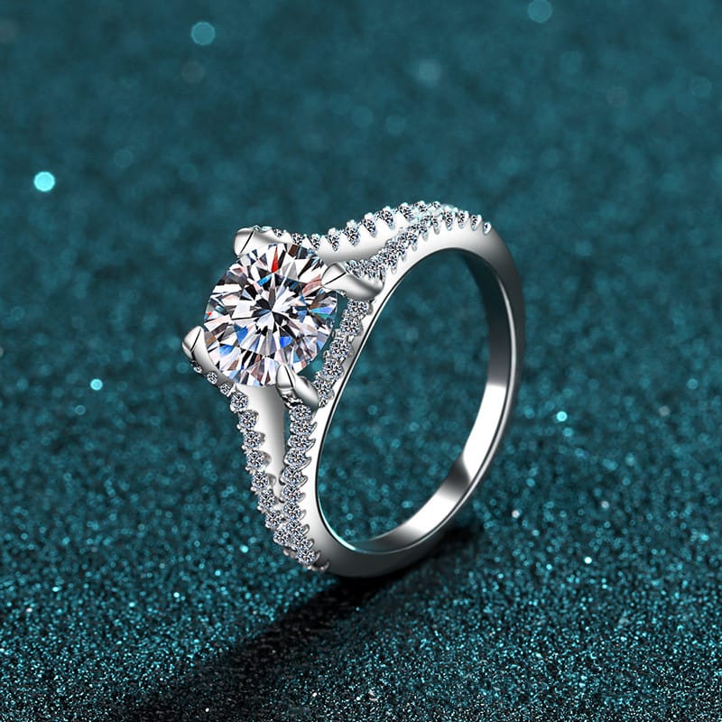 【莫桑鑽】2克拉雙V戒托四爪S925銀鍍鉑金戒指