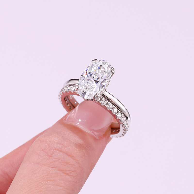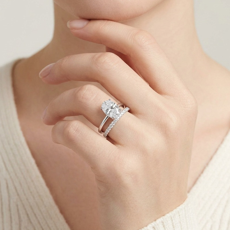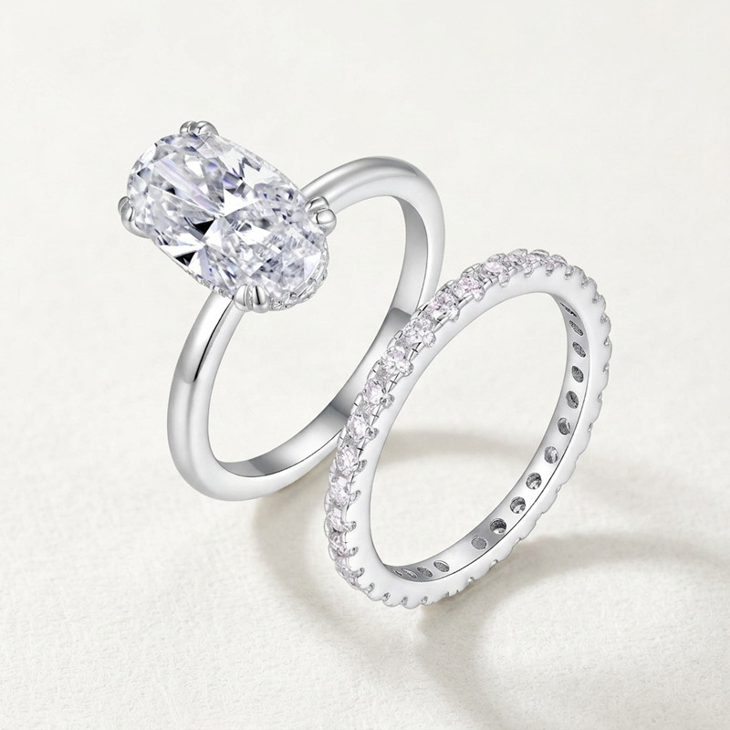 【莫桑鑽】兩款組合3克拉7*12mm蛋形+排戒S925銀鍍白金莫桑石戒指