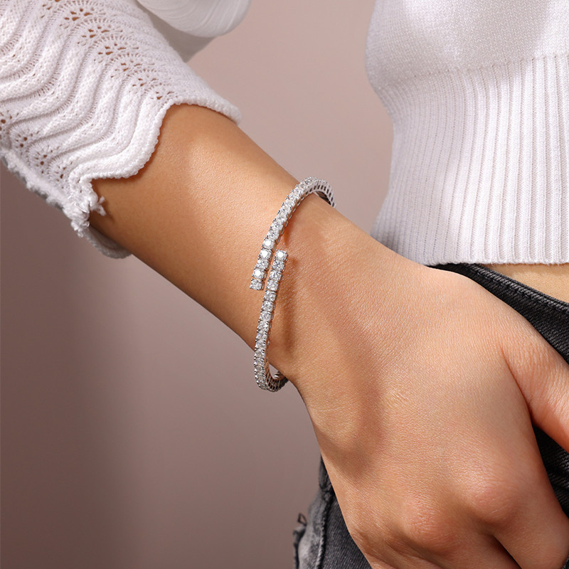 【莫桑鑽】時尚lady全鑽30分*65顆S925銀鍍白金開口莫桑石手鐲