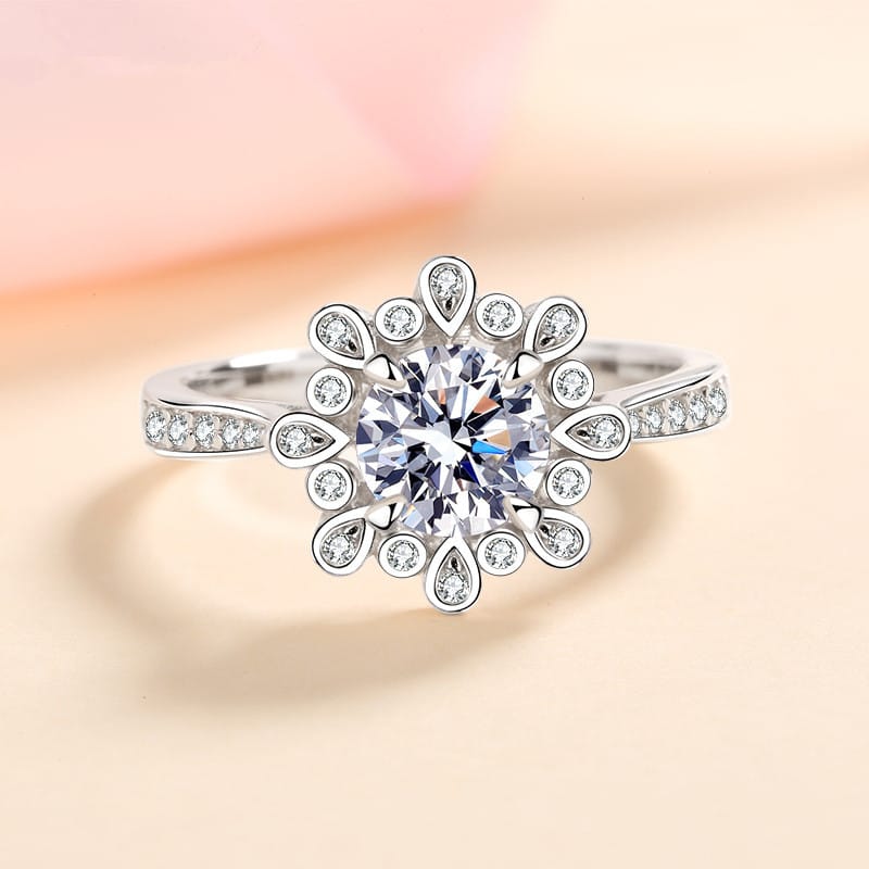 【莫桑鑽】1克拉蓮花S925銀鍍鉑金戒指