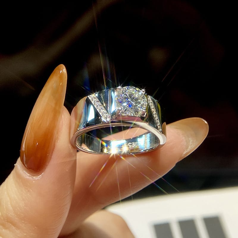 【莫桑鑽】1-2克拉霸氣男士S925銀鍍鉑金戒指