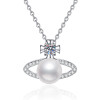 【莫桑鑽】滿鑽土星7.5-8mm淡水珍珠S925銀鍍鉑金項鏈45CM