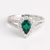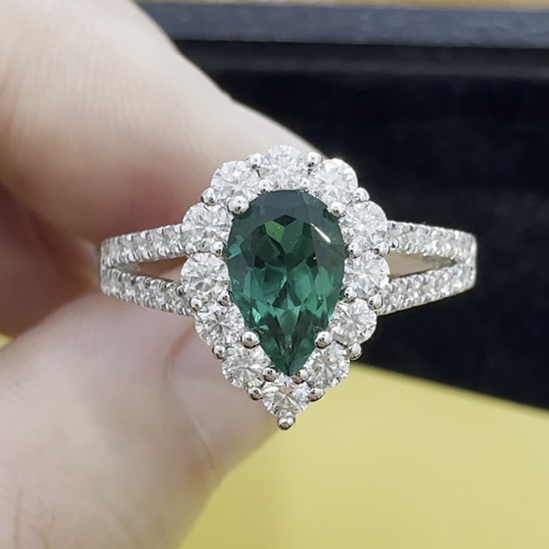 【莫桑鑽】1克拉梨形培育祖母綠V型莫桑微鑲臂S925銀鍍K金戒指