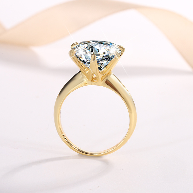 【莫桑鑽】【斷碼特價】六種顏色1-5克拉六爪圓鑽S925銀鍍黃金戒指