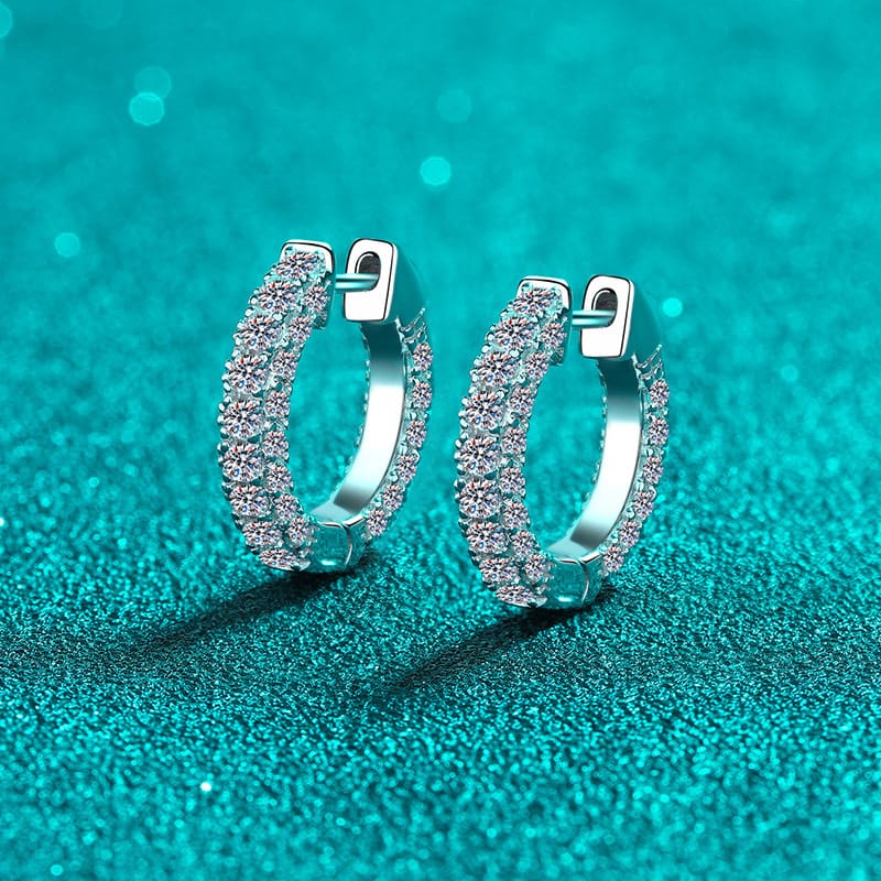 【莫桑鑽】2克拉超閃排鑽耳扣耳環