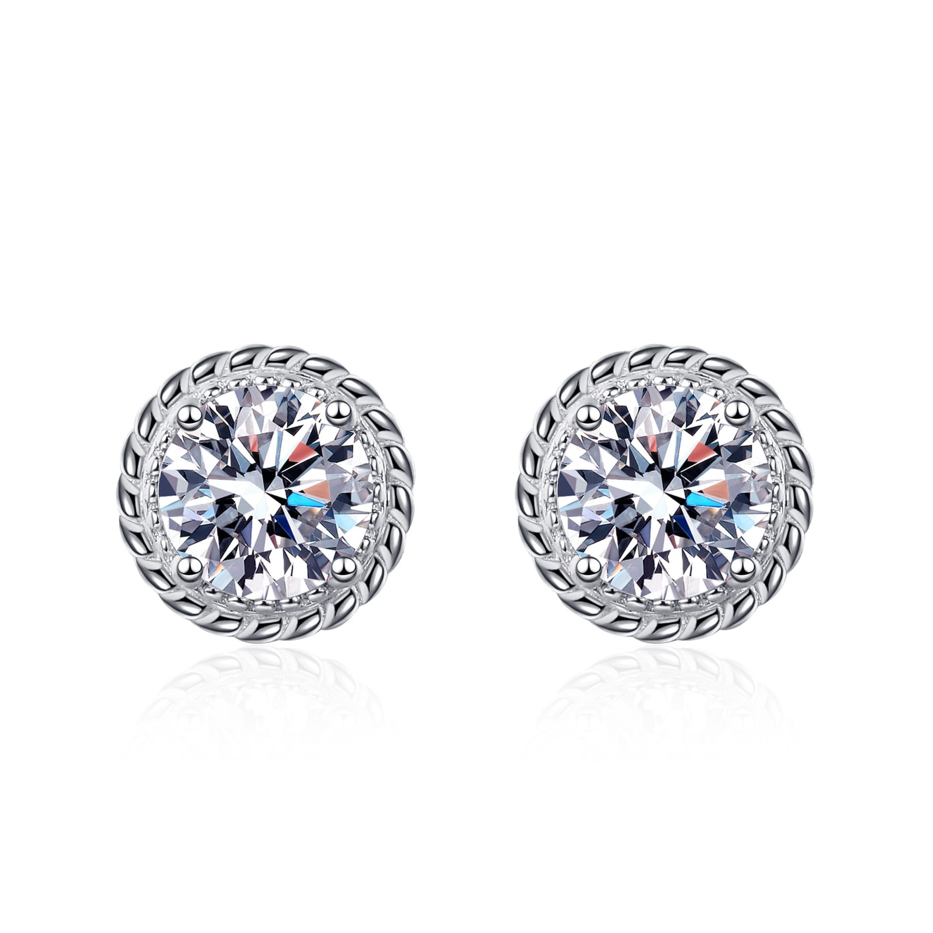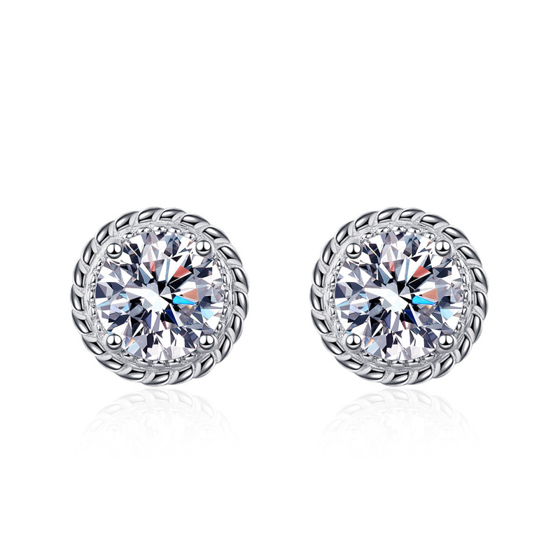 【莫桑鑽】50分-1克拉圓球螺紋S925銀鍍鉑金耳環