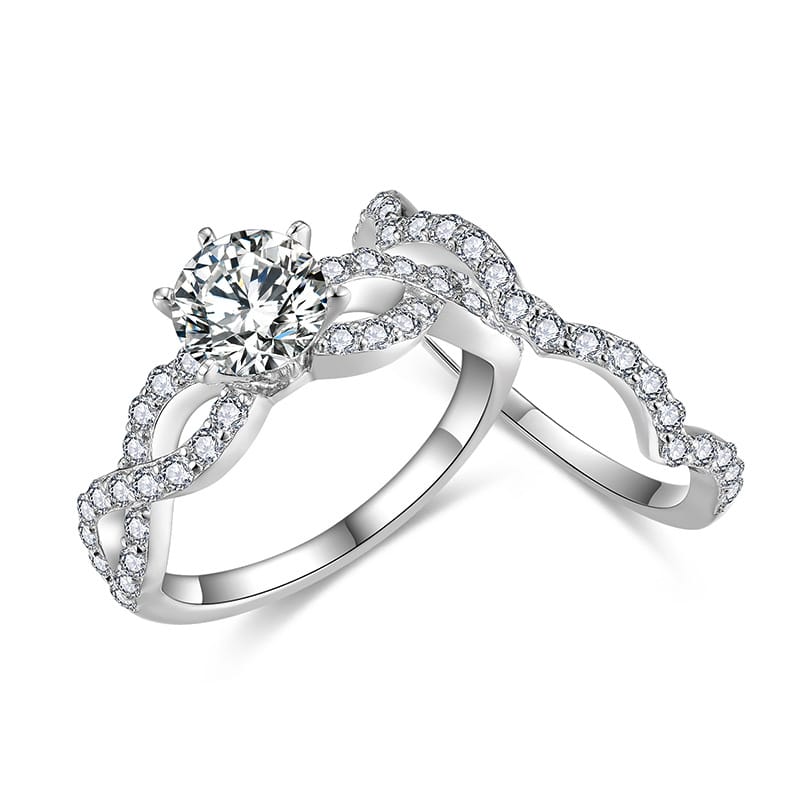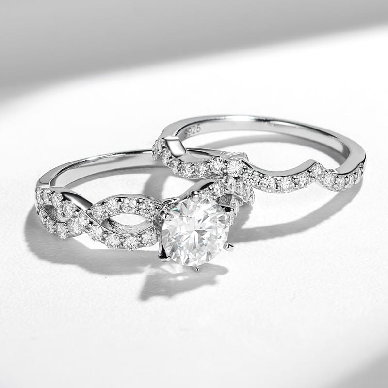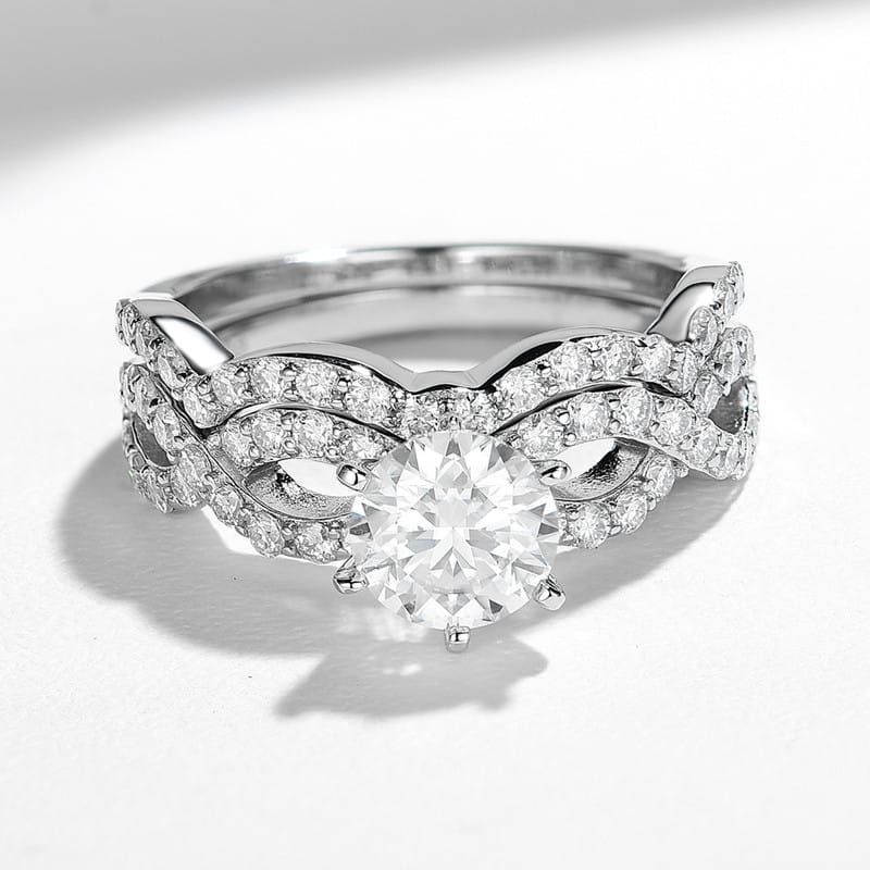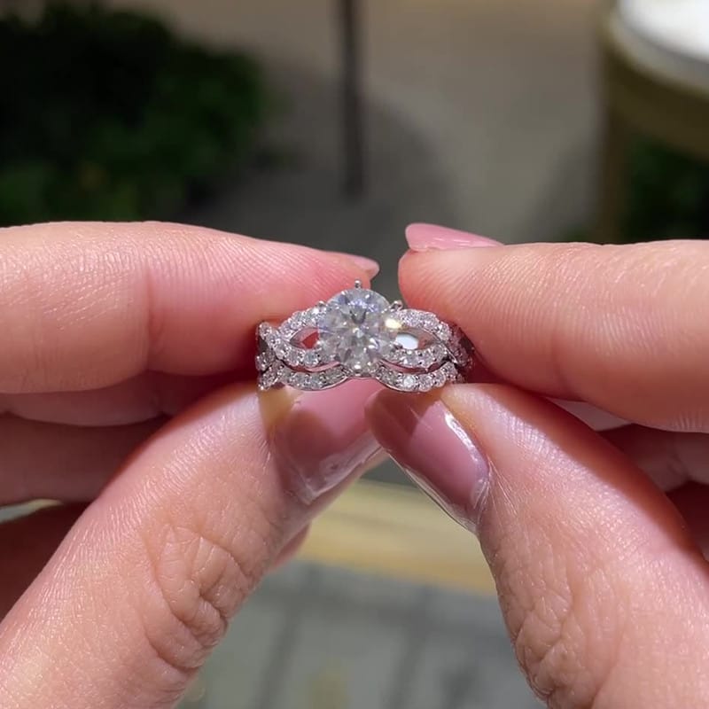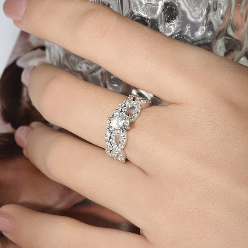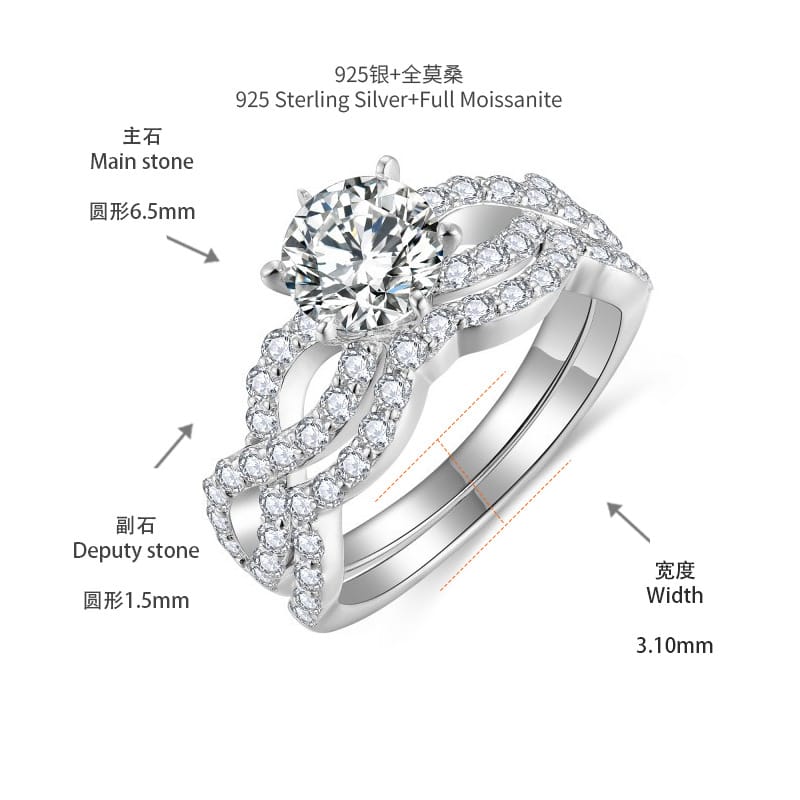 【莫桑鑽】二合一疊戴波浪排戒1+0.8克拉S925銀鍍白金戒指