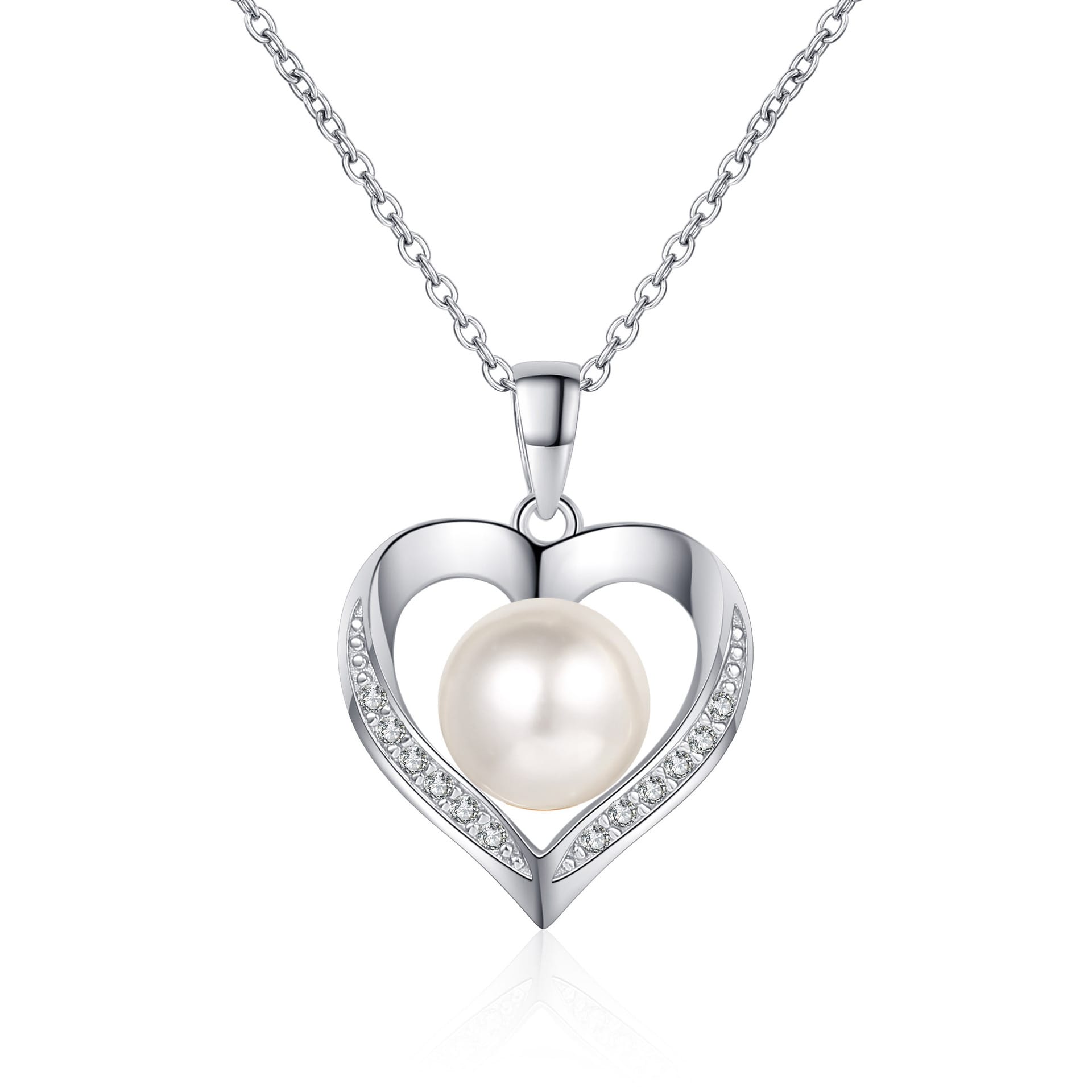 【莫桑鑽】心形8mm珍珠S925銀鍍鉑金頸鏈