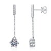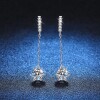【莫桑鑽】1克拉+1克拉六爪圓鑽長款S925銀鍍鉑金耳環