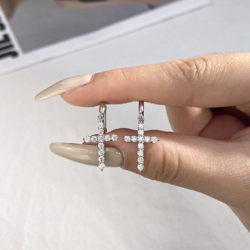 【莫桑鑽】18分小十字架S925銀鍍鉑金耳環