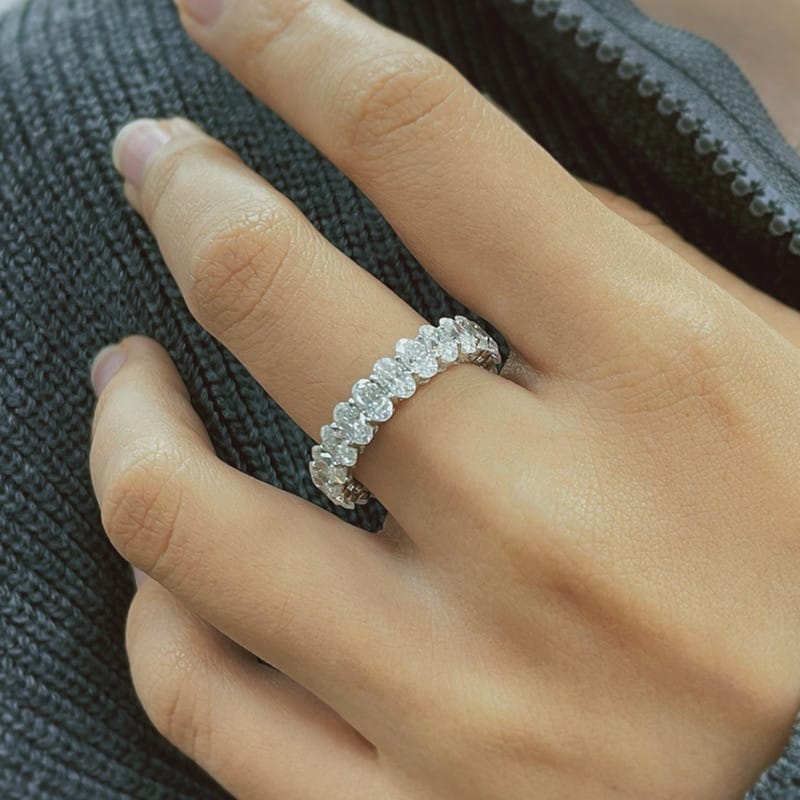 【莫桑鑽】豪華排戒3*5mm橢圓D色鑽S925銀鍍白金戒指
