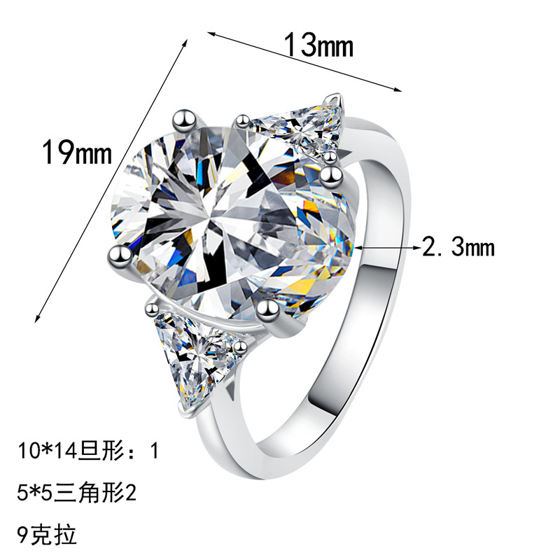 【莫桑鑽】9克拉蛋型倒三角歐美風S925銀鍍白金戒指