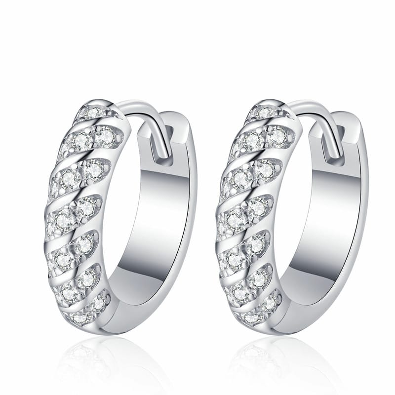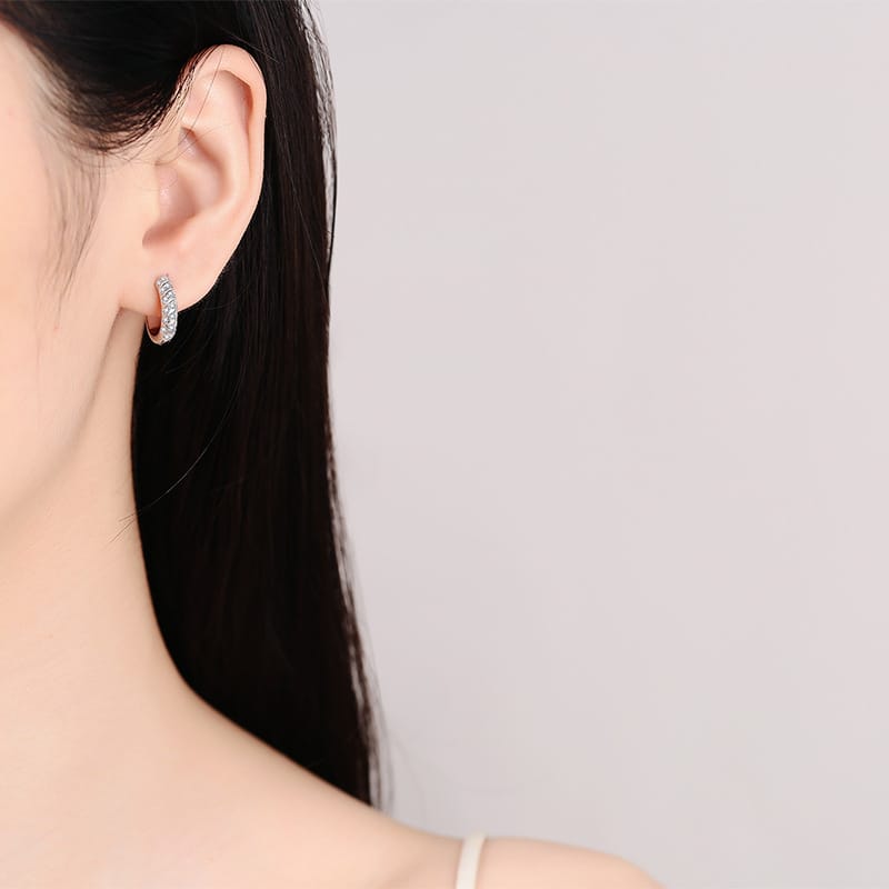 【莫桑鑽】滿鑽螺紋S925銀鍍鉑金耳扣耳環