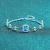 【莫桑鑽】藍白兩色1克拉祖母綠切雙層泡泡S925銀鍍鉑金手鏈