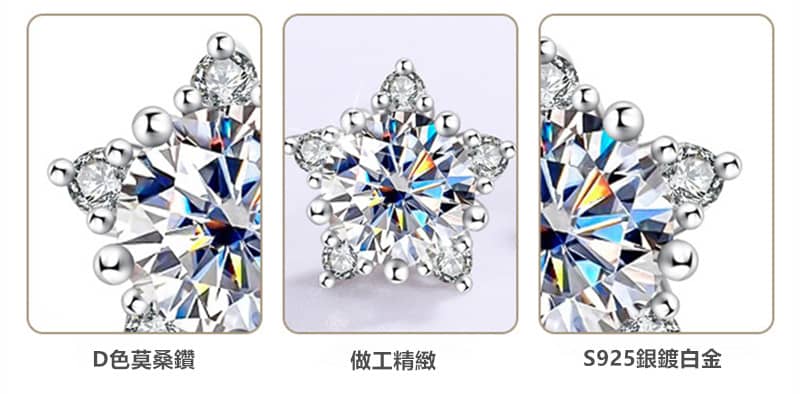 【莫桑鑽】1克拉+1克拉星光皇后S925銀鍍白金耳環 數量