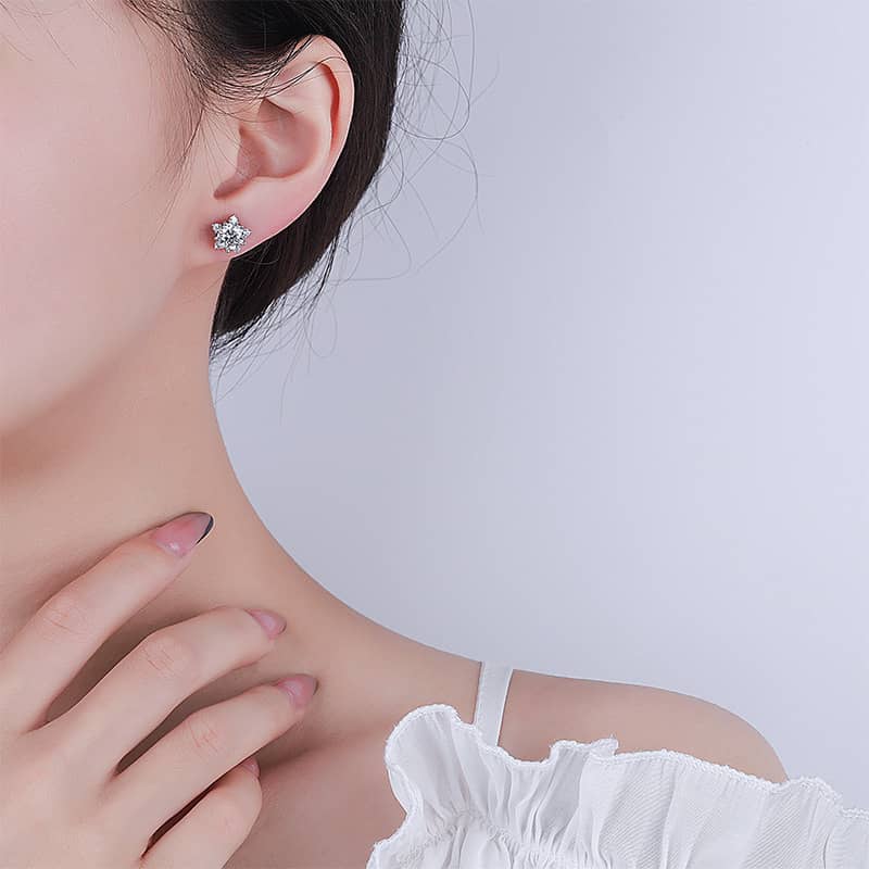 【莫桑鑽】1克拉+1克拉星光皇后S925銀鍍白金耳環