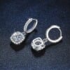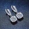 【莫桑鑽】經典圓鑽方形包邊S925銀鍍鉑金耳環