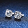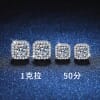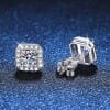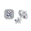 【莫桑鑽】四爪圓鑽方形包邊S925銀鍍鉑金耳環