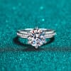 【莫桑鑽】3克拉手捧花六爪圓鑽微鑲臂S925銀鍍鉑金戒指