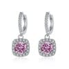 【莫桑鑽】五種顏色1克拉+1克拉四爪圓鑽方形鑲邊S925銀鍍白金耳環