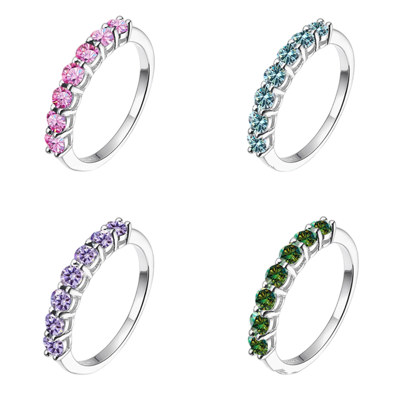 【莫桑鑽】六種顏色70分七公主排鑽S925銀鍍白金戒指