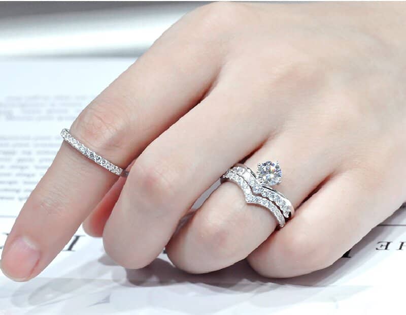 【莫桑鑽】三款細細閃時尚疊戴風排鑽S925銀鍍白金戒指