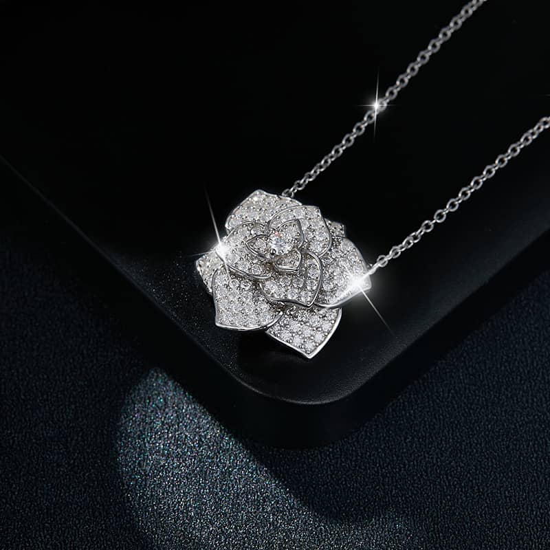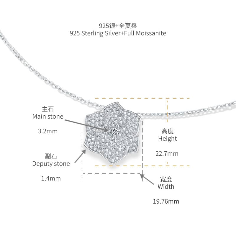 【莫桑鑽】豪華滿鑽山茶花S925銀鍍18K金項鏈(預付款定制)