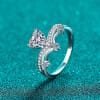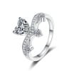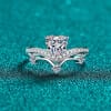 【莫桑鑽】1克拉愛心型鑲鑽V型托S925銀鍍鉑金戒指
