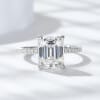 【莫桑鑽】極品4克拉Emerald祖母綠切8*10mm微鑲戒托S925銀鍍白金戒指