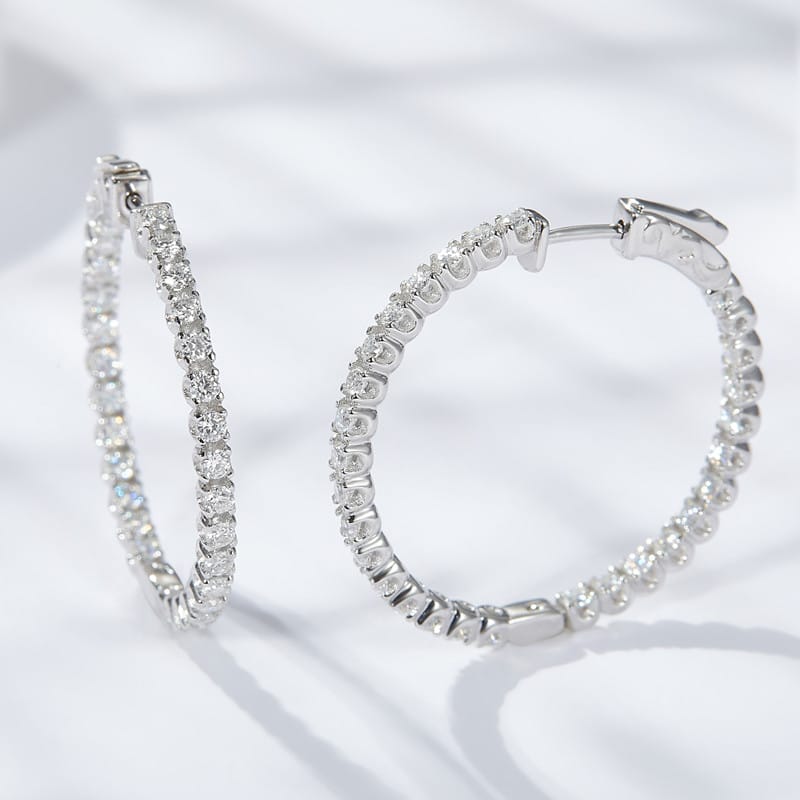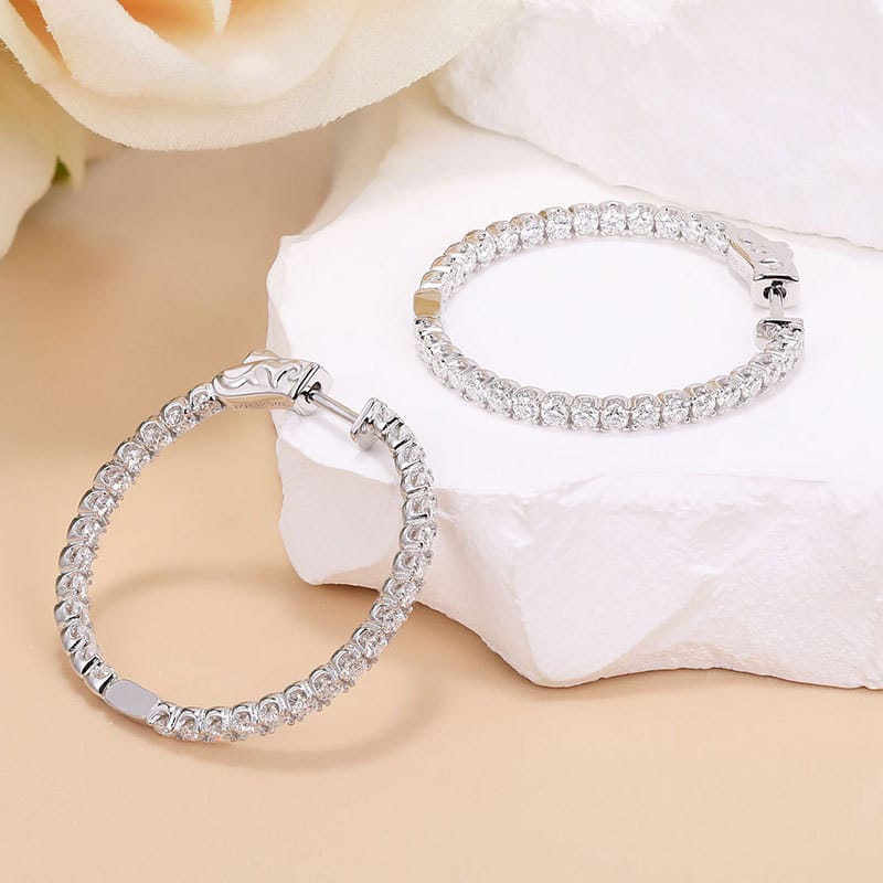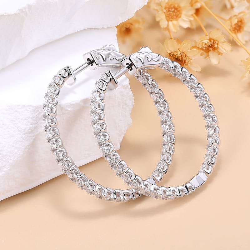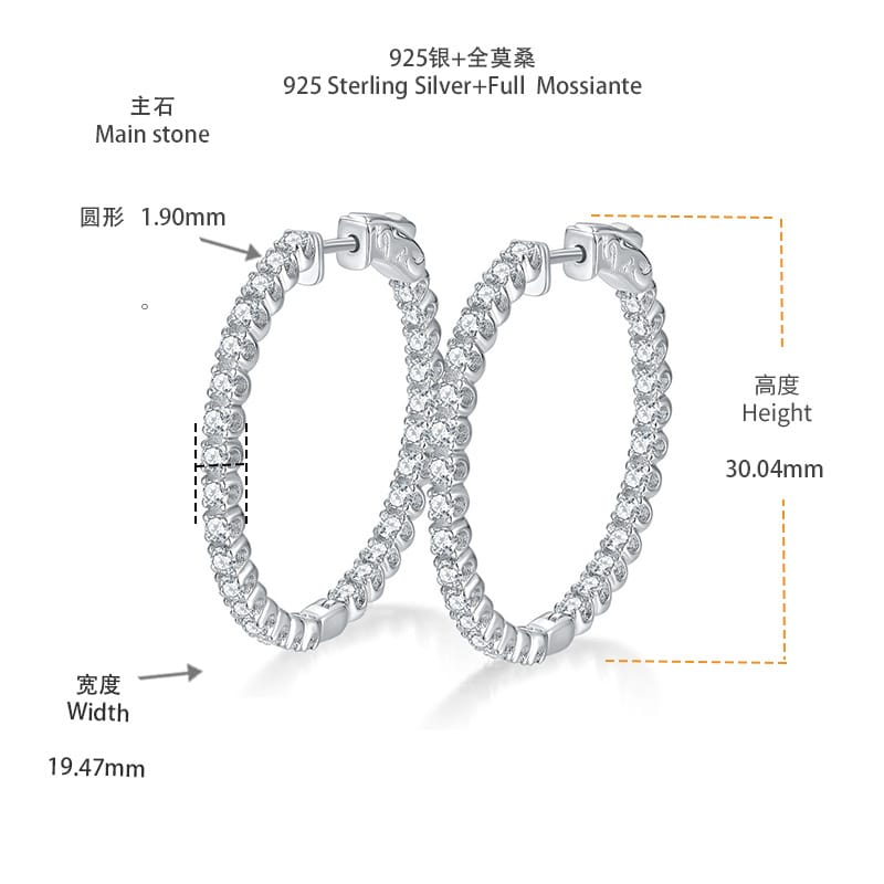 【莫桑鑽】1.56ct高級感1.9mm內外鑽30MM歐美風圈圈S925銀鍍白金耳環