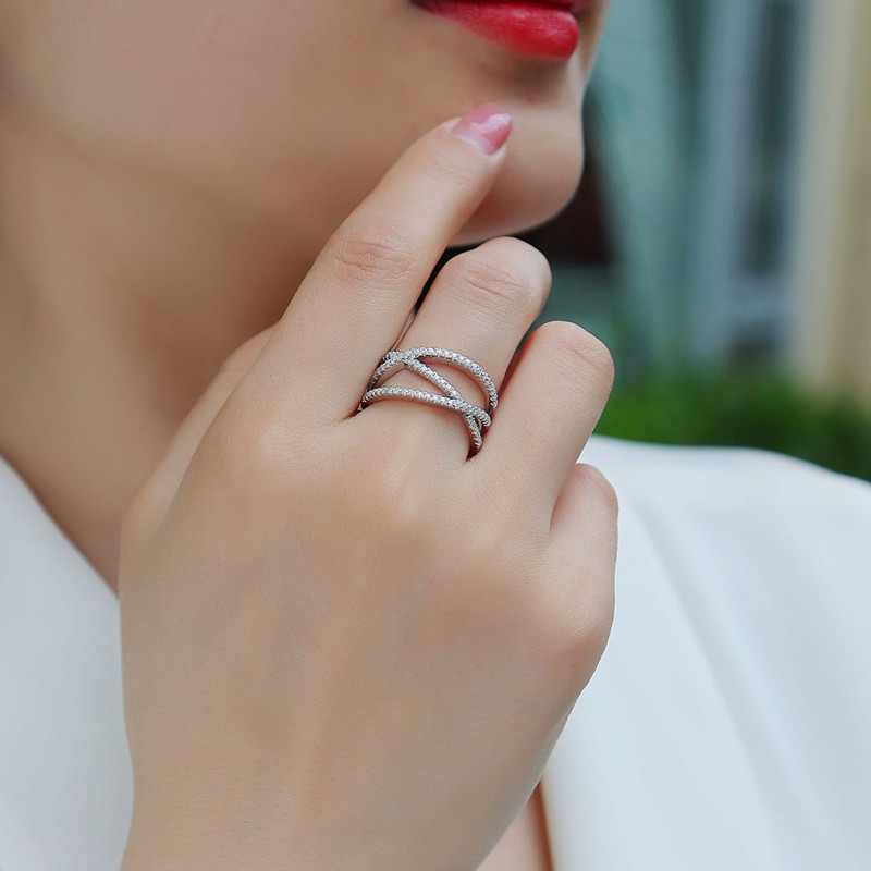 【莫桑鑽】三生之緣碎鑽S925銀鍍白金戒指