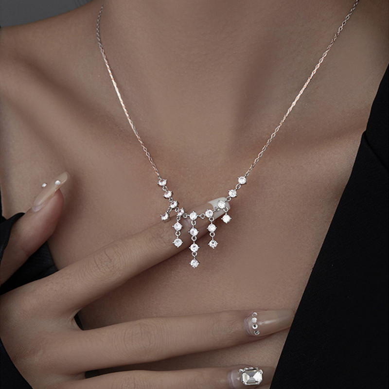 【莫桑鑽】星河瀑布1.8克拉流蘇S925銀鍍白金項鏈