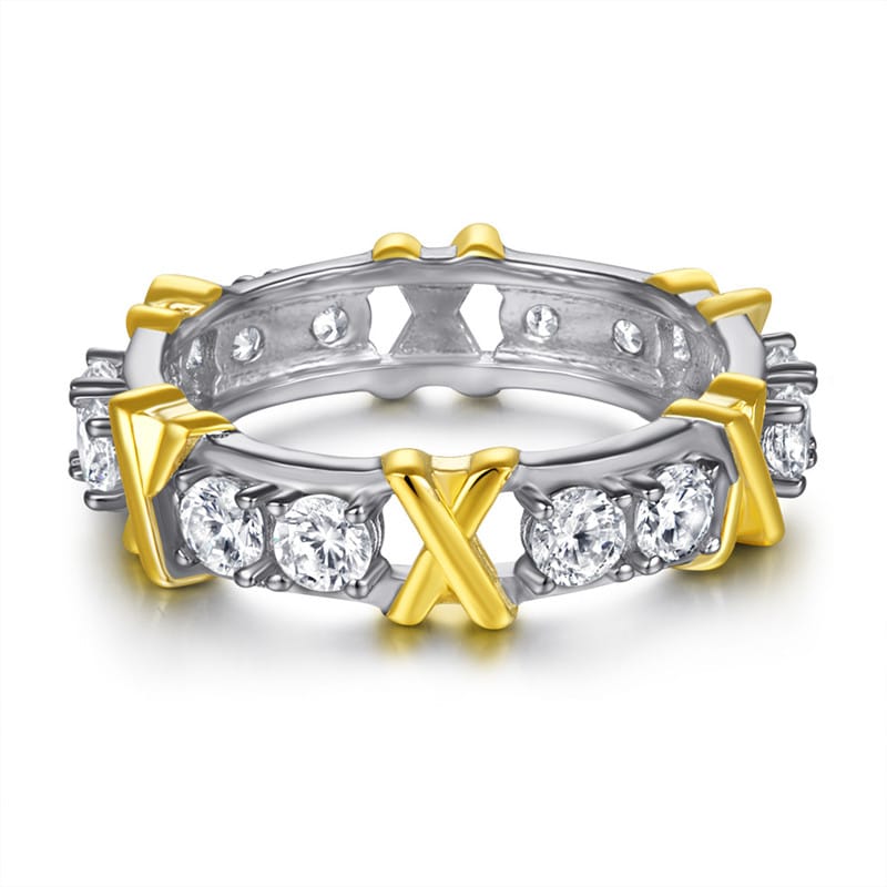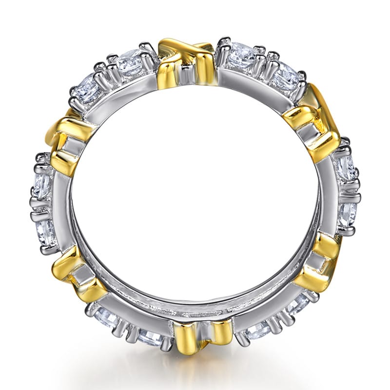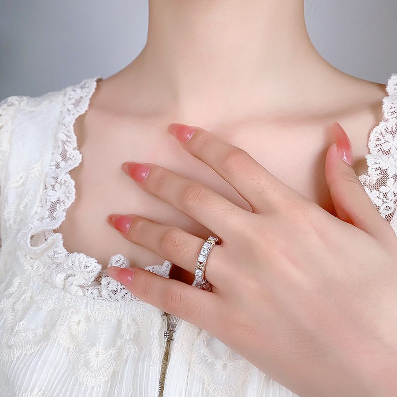 【莫桑鑽】1.5克拉撞色X交叉S925銀鍍白金戒指