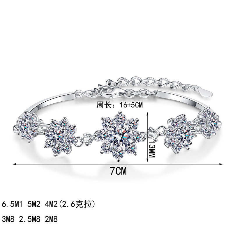 【莫桑鑽】2.6克拉五花太陽花S925銀鍍鉑金手鏈