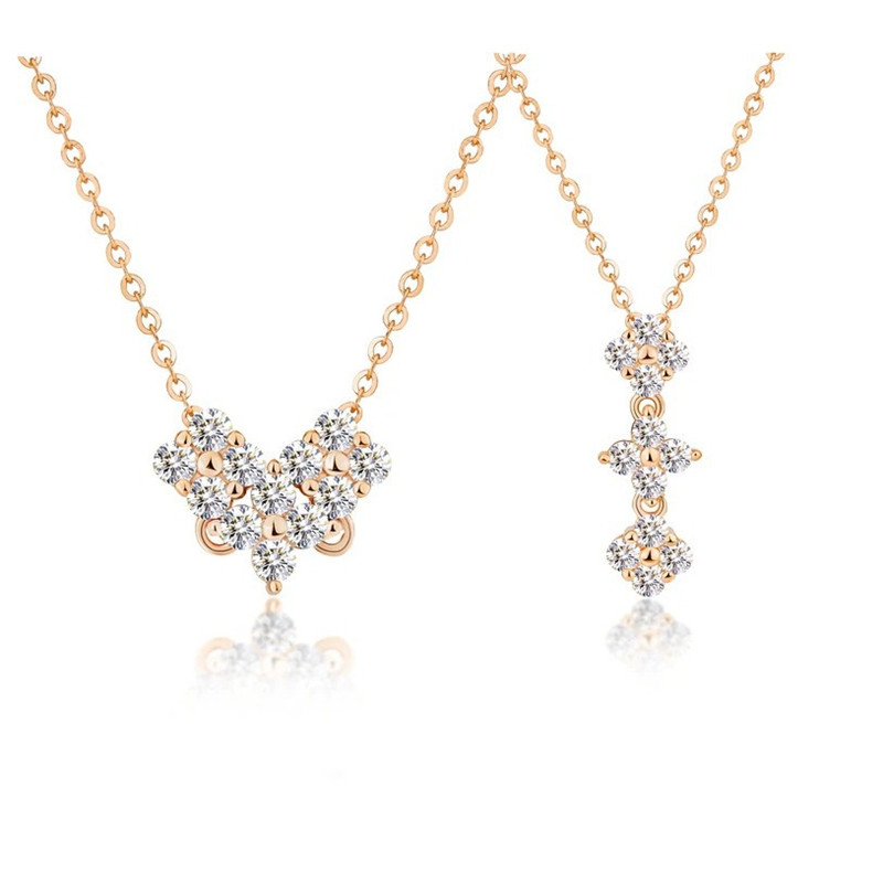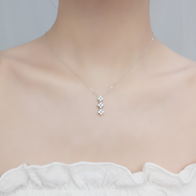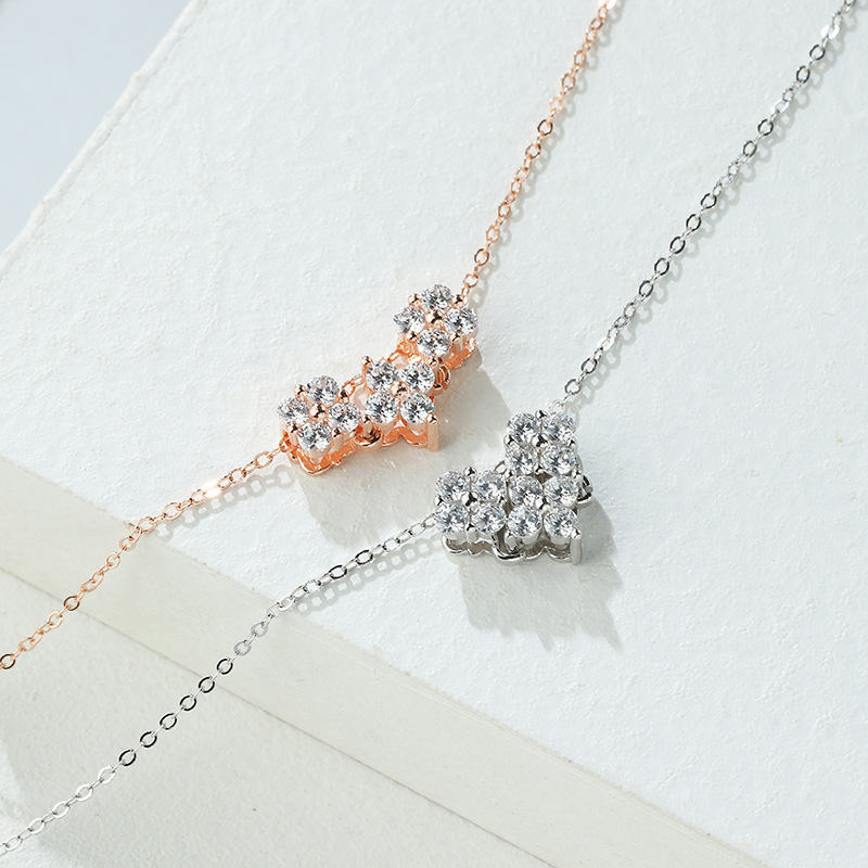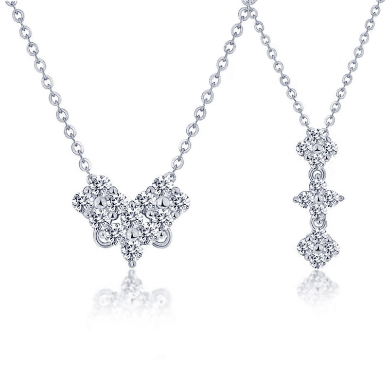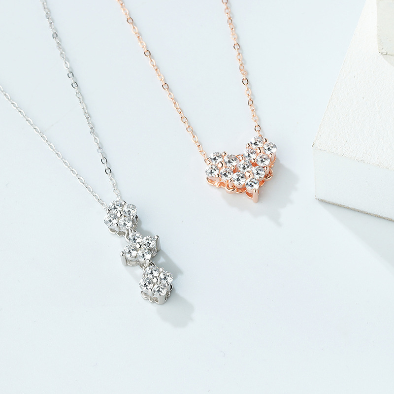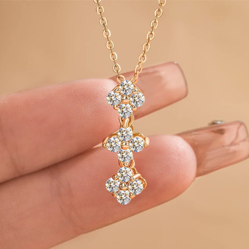 【莫桑鑽】一款兩戴一字四葉草小愛心S925銀鍍金項鏈