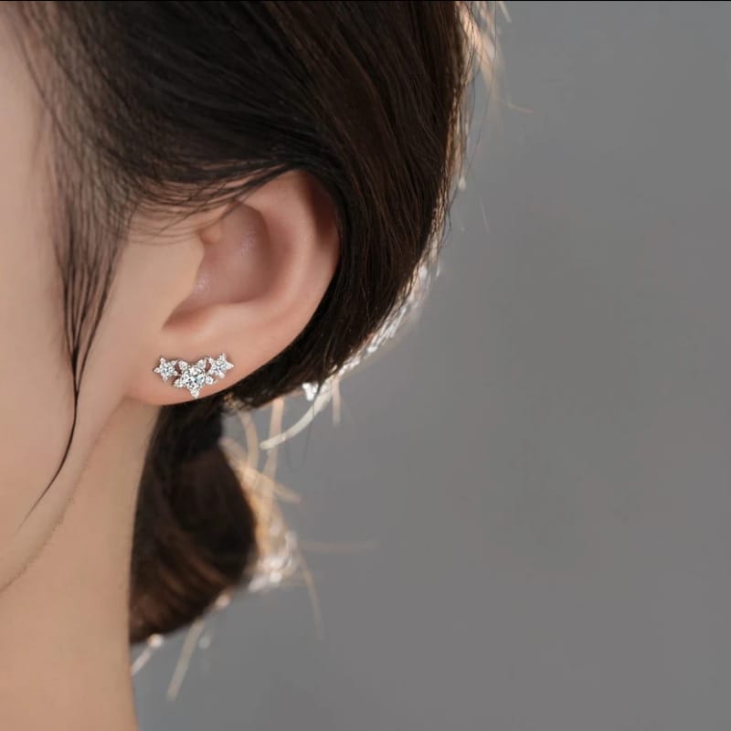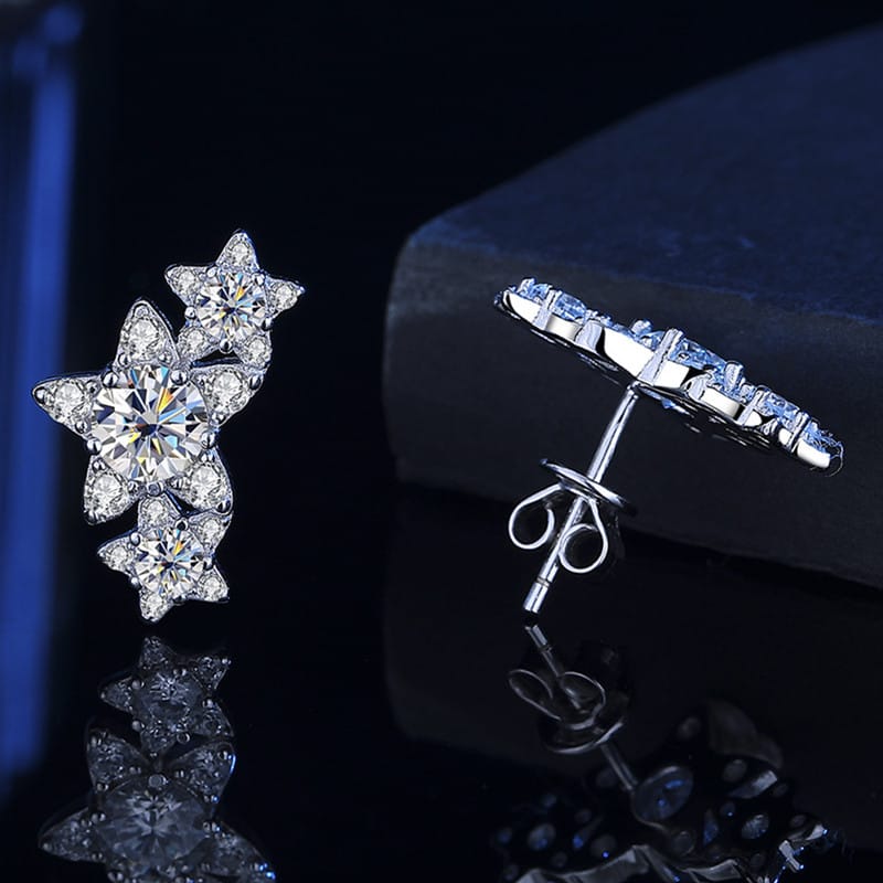 【莫桑鑽】三顆小星星50分+50分S925銀鍍白金耳環