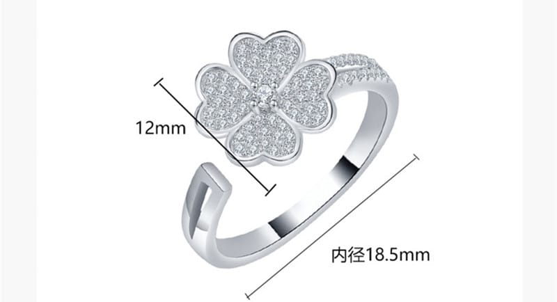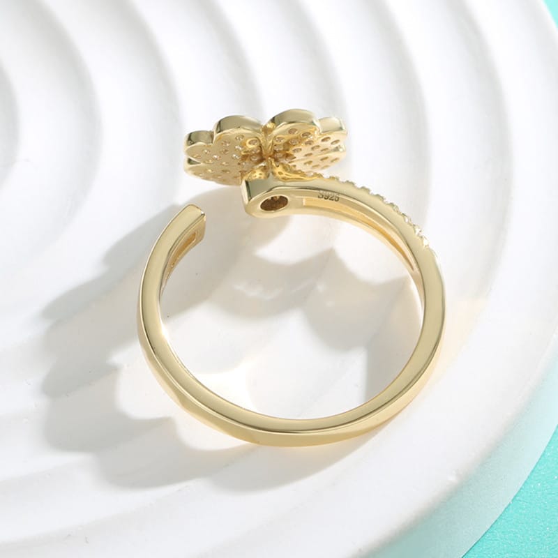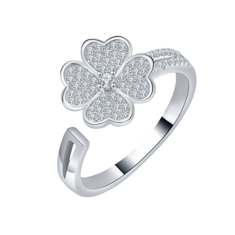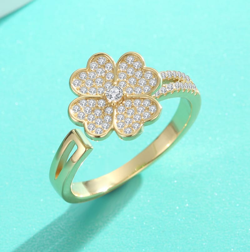 【莫桑鑽】可旋轉滿鑽四葉草S925銀鍍金戒指