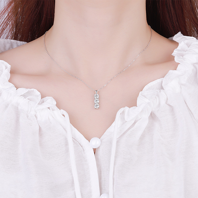【莫桑鑽】七種顏色1.5克拉三鑽S925銀鍍白金項鏈