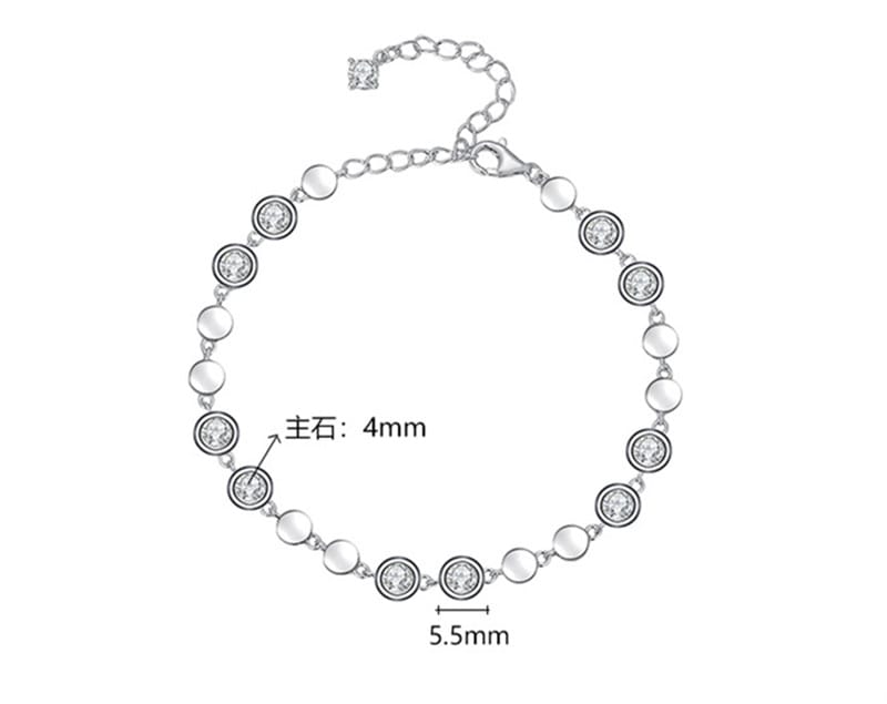 【莫桑鑽】波光點點主石4mm泡泡S925銀鍍金手鏈15+5CM