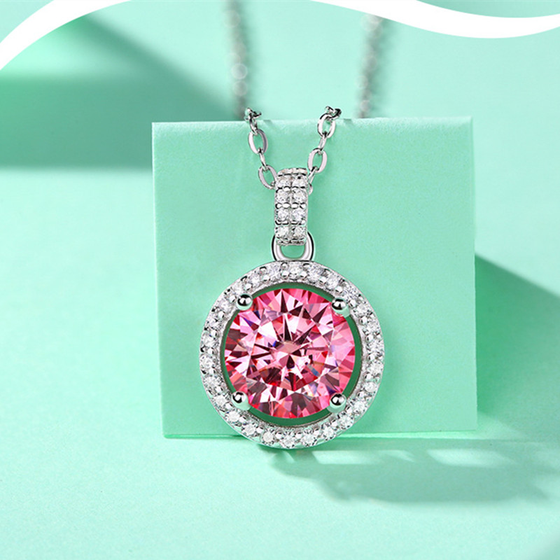 【莫桑鑽】1克拉/3克拉粉鑽圓包S925銀鍍白金項鏈