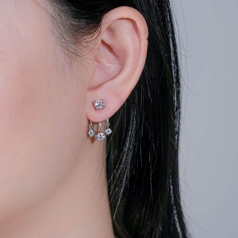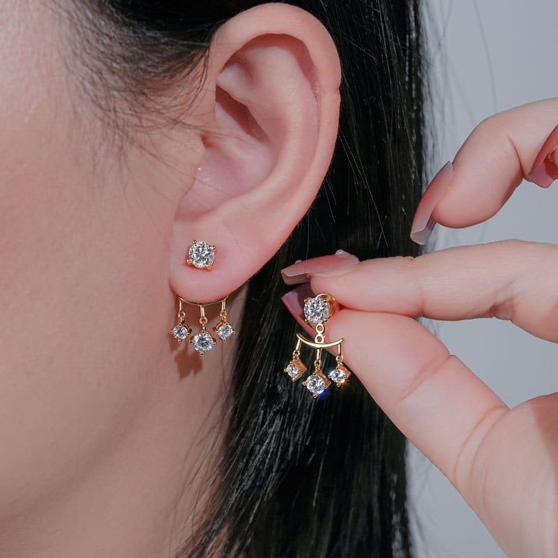 【莫桑鑽】水滴流蘇兩種戴法可拆卸S925銀鍍金耳環